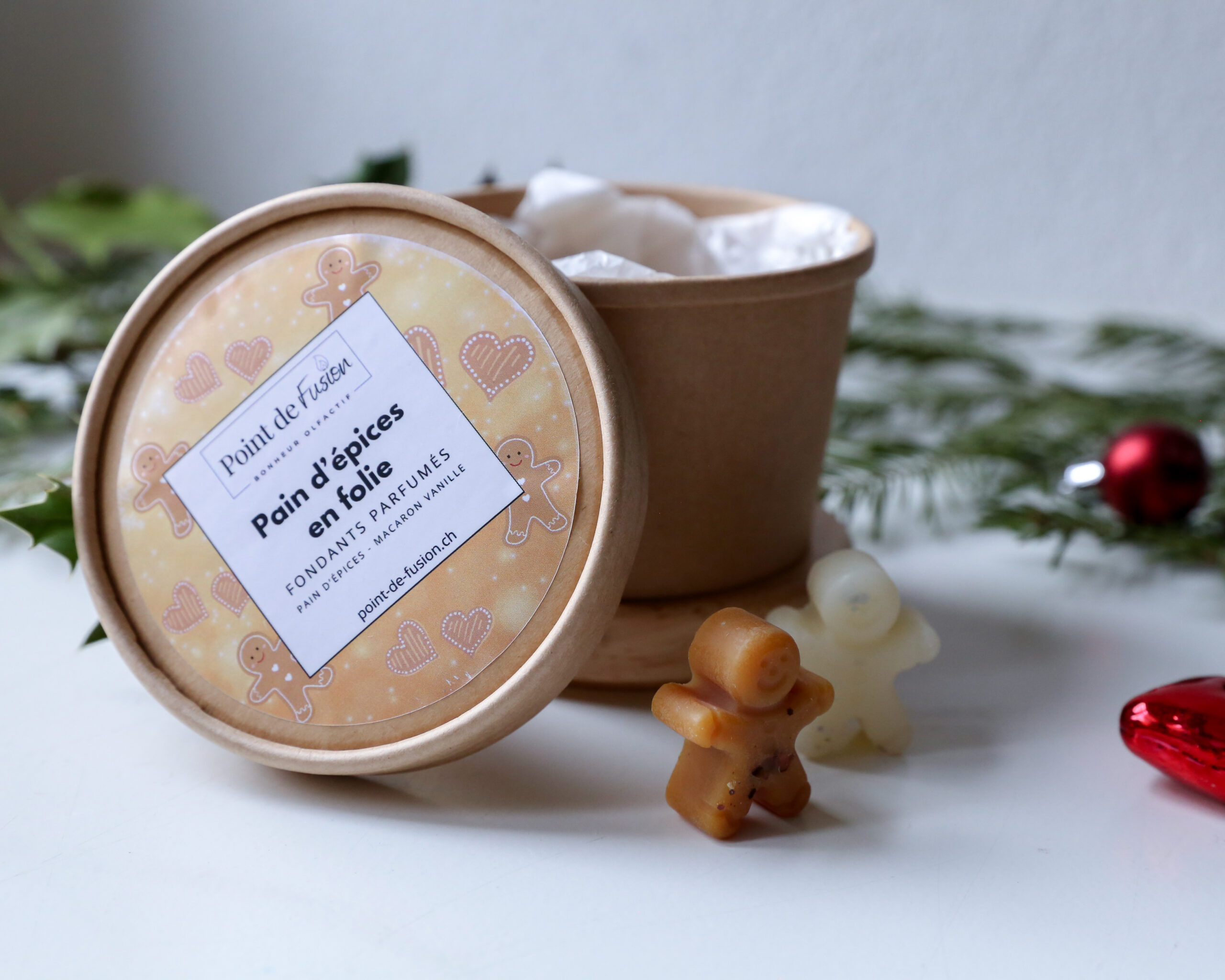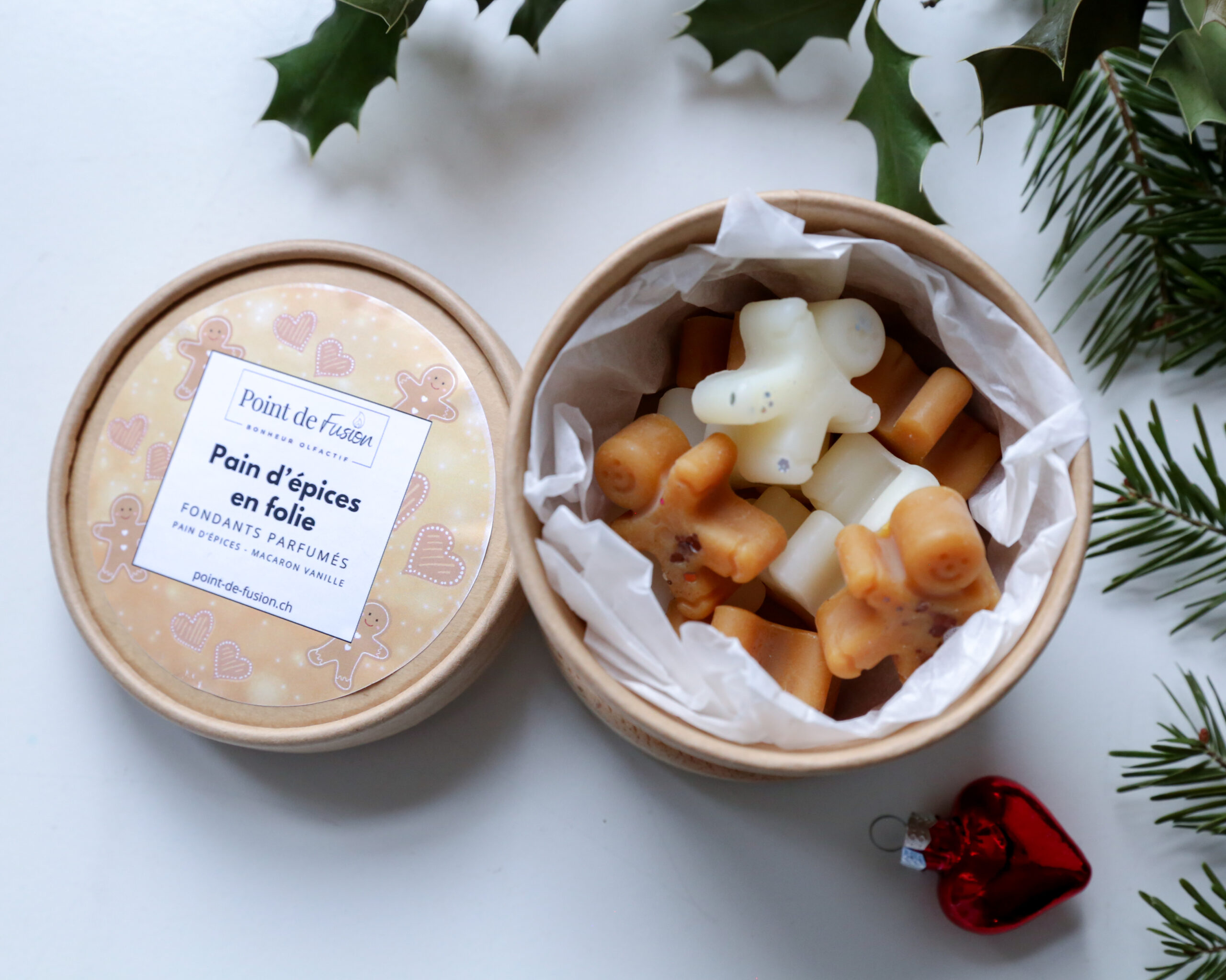 Apportez la gourmandise et la chaleur de Noël dans votre intérieur avec notre boîte de fondants parfumés “Pain d’épices en folie”. Confectionnés à base de cire végétale d’olive et moulés en adorables formes de bonhommes de pain d’épices, ces fondants parfumés sont le complément parfait pour créer une ambiance festive et réconfortante.