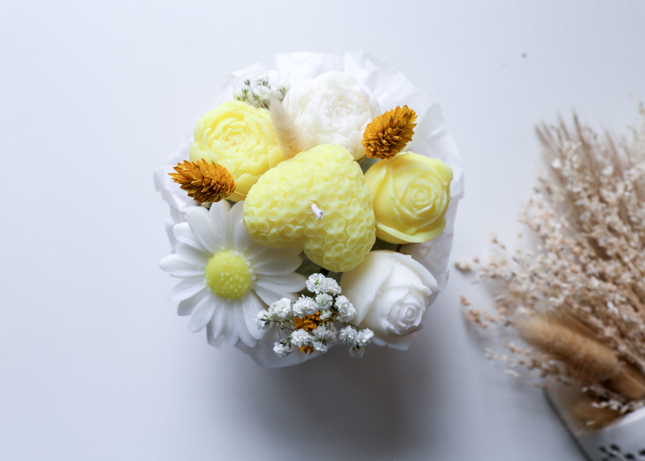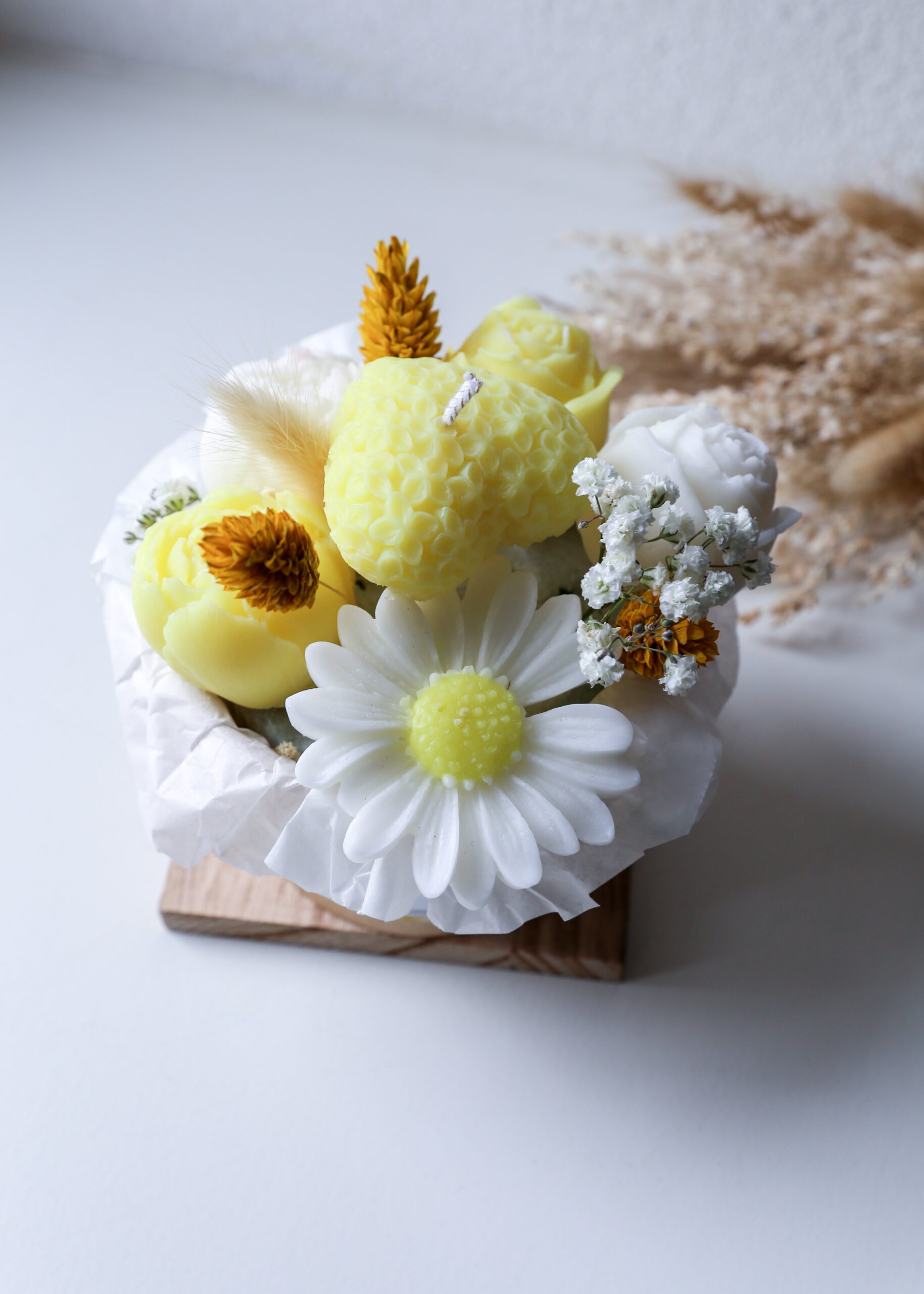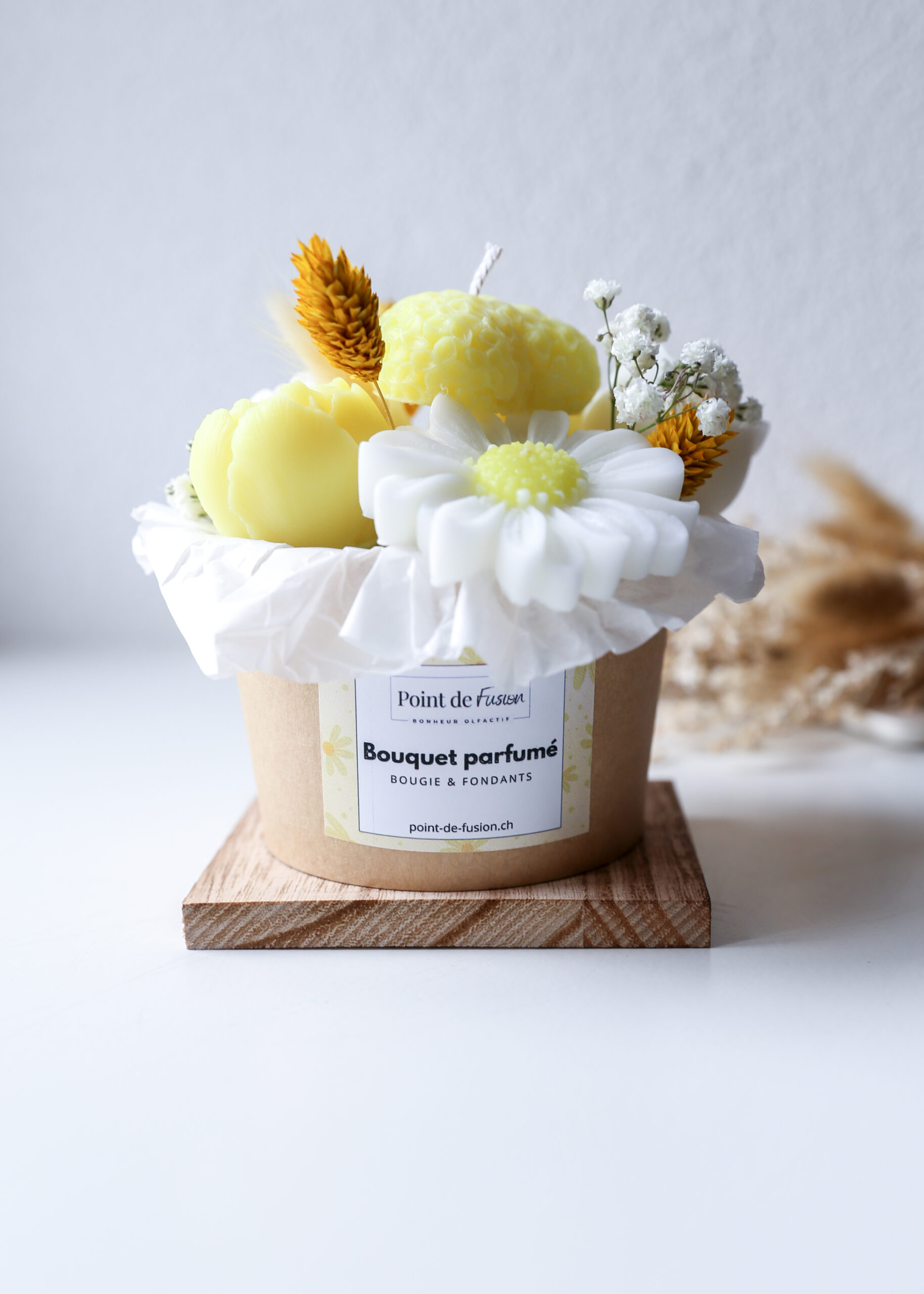 Offrez-vous ou à vos proches un bouquet parfumé unique, alliant la délicatesse des fleurs et la douceur des parfums ! Ce bouquet original se compose de fondants parfumés en forme de fleurs et d’une bougie assortie, soigneusement confectionnés avec les fragrances best-sellers de notre boutique.