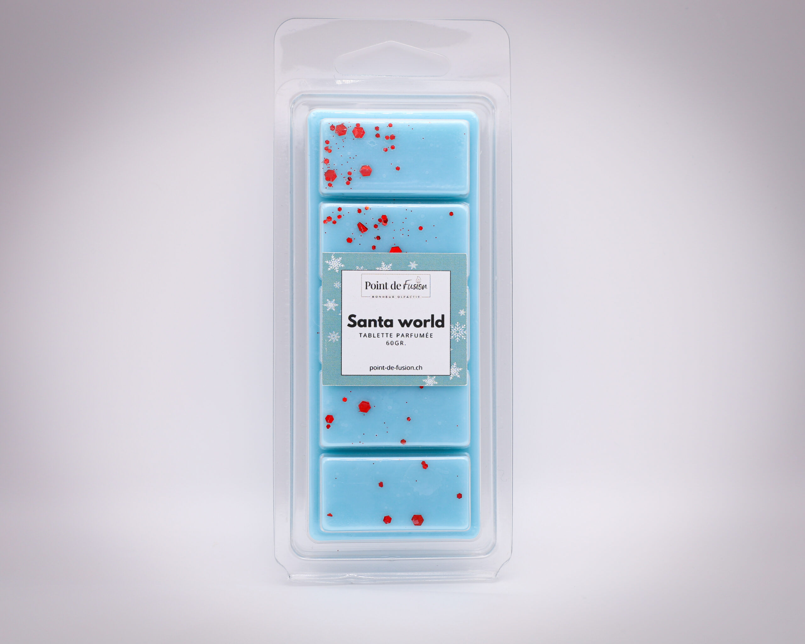 Tablette parfumée Santa World, la chaleur de la cannelle se mêle à la fève tonka, avec un accent de basilic qui surprend. La douceur de la vanille caresse des notes de bois de cèdre et de patchouli.